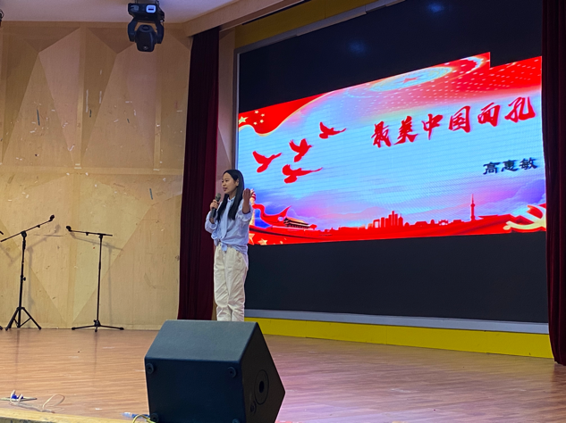 高霖在她激情洋溢的演讲中讲到姥爷和舅舅艰辛而多彩的军旅故事。而她作为大一新生参加军训,更真切地体会到革命胜利来之不易,并赞叹我国国防事业的昌盛繁荣。