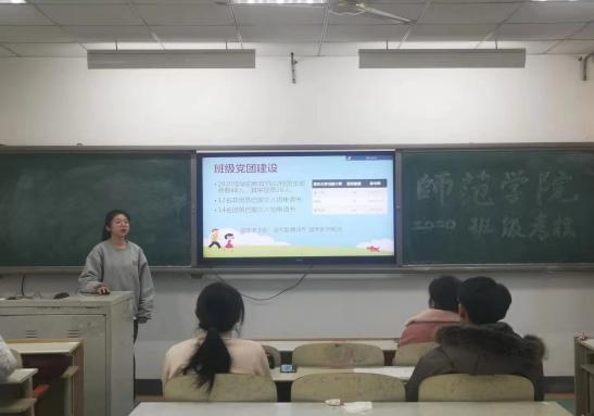 吃瓜 师范学院2020年秋季学期班长总结汇报大会于12月22日在德音楼419教室顺利召开。师范学院辅导员赵炜、李萌萌、张宁、林欢和学生会主席团成员担任本次工作汇报的评委,2019、2020级各班班长参加此次汇报答辩。
