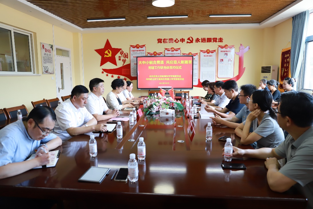 孙百才向与会人员介绍了学院基本情况和在教育研究、人才培养等方面工作情况,分享了对大中小党建联合体相关工作开展的思考。他表示,学院将充分发挥自身在师资、科研等方面的优势,积极推进与宁真小学的合作,通过党建联合体这一平台,共同推动教育教学改革创新,为新时期教育强国建设贡献力量。