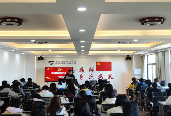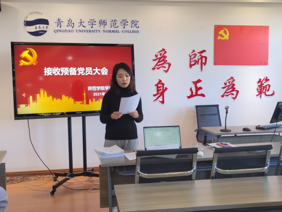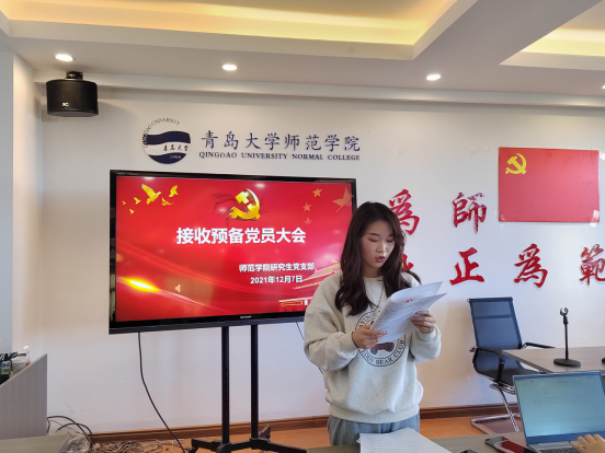 2021年12月7日中午,师范学院研究生党支部、学生党支部在德润楼201会议室召开接收预备党员大会,本次大会由研究生党支部书记林欢、学生党支部宣传委员张宁主持,支部所有党员同志参会。