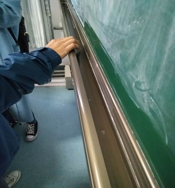 同学在仔细地清理黑板槽