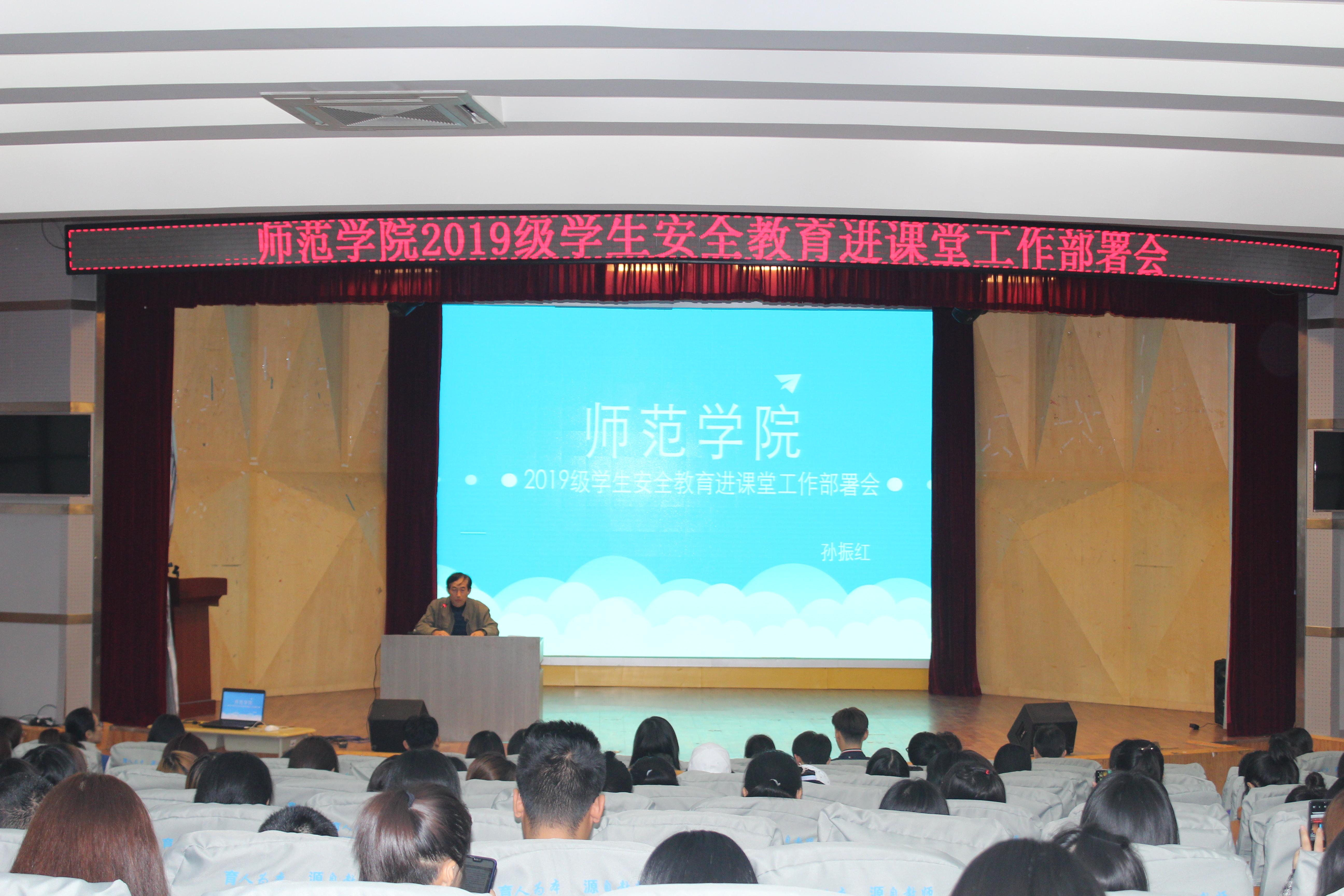 11月6日下午,师范学院在北院报告厅召开2019级学生安全教育进课堂工作部署会,本次会议由院学工办孙振红老师主持,2019级全体学生参加。