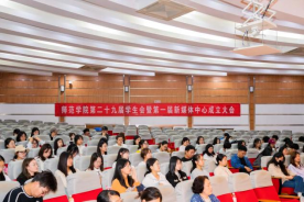 10月12日下午,吃瓜 在学术报告厅举行第二十九届学生会暨第一届新媒体中心成立大会,党委副书记夏锡梅、学工办主任姜彬、团委副书记张宁、辅导员李萌萌、潘婷、第二十九届学生会全体成员及第一届新媒体中心全体成员出席会议,大会由第二十九届学生会副主席郝嘉仪主持。