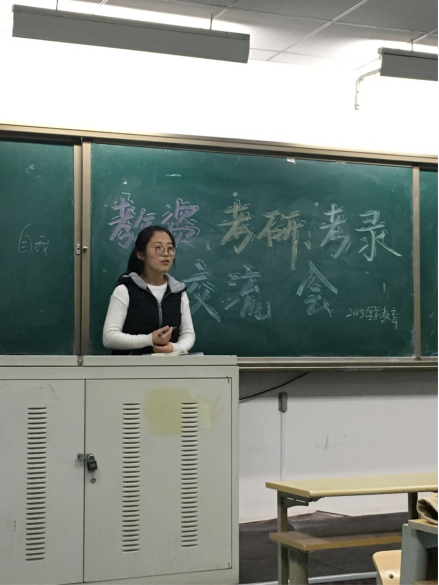 纪彩接下来替同学们为考研问题进行了讲解,首先,指出了2015级考研考试时间安排计划:2018年3月开始准备考研内容;3月至5月基础学习(看教材、单词);暑假经营强化记忆学习,9月至10月对知识进行查漏补缺,10月中旬进行考研冲刺。考研考试在12月最后一个周末。其次是学习方向,要从教育学专著(时事政治、马哲、毛概)、政治、英语等方面入手。此外,强调了跨专业考研的问题,指出考其它专业的研究生要比考本专业研究生提前半年进行准备学习。