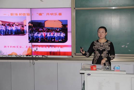 报告开始之前董亚运表达了她对大学期间给予她无私帮助的老师们的由衷感谢,表达了自己对母校深沉的爱意。她从“职场初体验,痛并快乐着”、“抓住好机遇:努力中”、“借力新平台,努力中提升”和“几点建议”四大板块进行了精彩的报告。她声情并茂的为我们讲述了从大学的迷茫到初入职场的心酸不易再到凭借自己良好的心态和过硬的专业知识以及积极向上的态度经过艰辛努力,走向成功的历程。说起自己在乡村小学的经历与收获,学姐还情不自禁的落下了眼泪,同时她还无私的分享了她的成功经验,“机会总是留给有准备,别人不做的事你去做,别人不愿意参加的比赛你去参加,别人嫌麻烦你不嫌麻烦,留心观察用专业知识充实自己。”并以她自己在八里庄小学的工作经验为例,向我们做了生动的解释。
