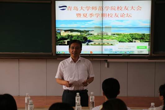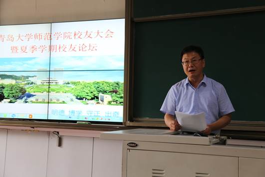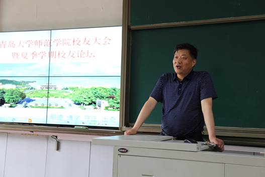 师范学院李福华院长介绍了学院发展现状,他从人才培养、产学研协同育人、师资队伍建设、学科发展历程、学科建设规划等方面介绍了学院近几年来开展的主要工作和取得的突出成绩。他表示,学院是广大校友共同的精神家园,校友是学院声誉的口碑、学院办学质量的一面镜子、母校最宝贵的财富和最响亮的名片,他期待校友们共同参与、助力学院的发展。