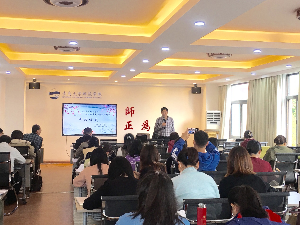 2020-2021年第四期青岛市孤独症康复治疗教师培训于11月21日在德润楼201会议室正式开始。本次培训为期10天,有全市各区特教及普教教师近80名参加培训。