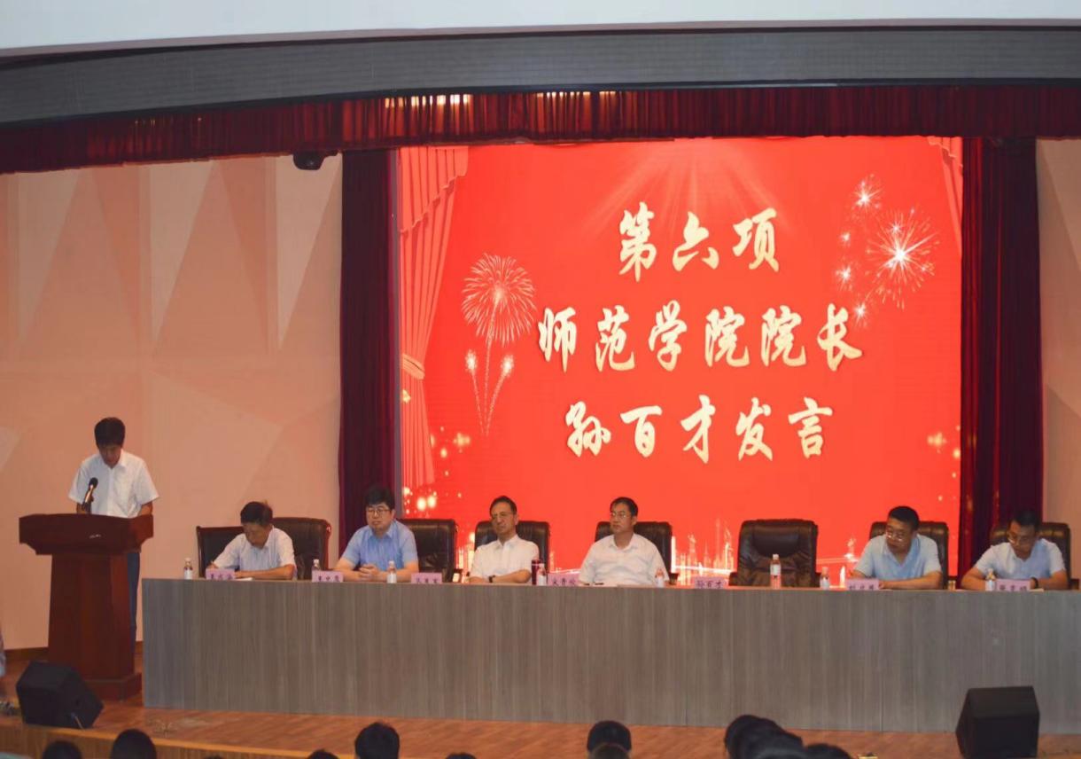 9月24日上午9点,师范学院2021级新生开学典礼暨入党启蒙教育在德润楼学术报告厅召开。学院党委书记宋贵欣、院长孙百才、副院长马勇军、刘启民、院长助理王忠厚、张克顺出席本次会议,教师代表、班主任代表、新生辅导员、在校生代表及全体21级新生参加本次会议,会议由学院党委副书记王成海主持。