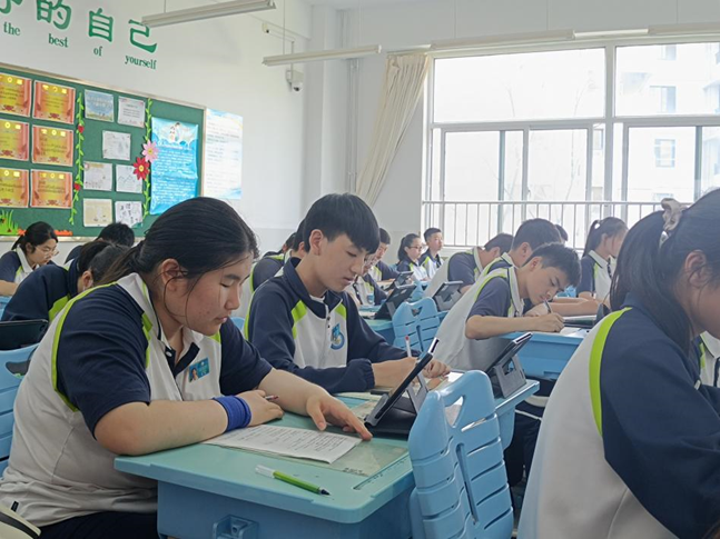 调研期间师生进入初一语文课堂对学生在课堂中使用平板的现实情况进行实地观摩,相较于传统教室,智慧课堂教学能更好地辅助教师的教学工作,对于促进学生学习有积极的作用,此次实地教学观摩加深了师生对智慧课堂应用的认识。