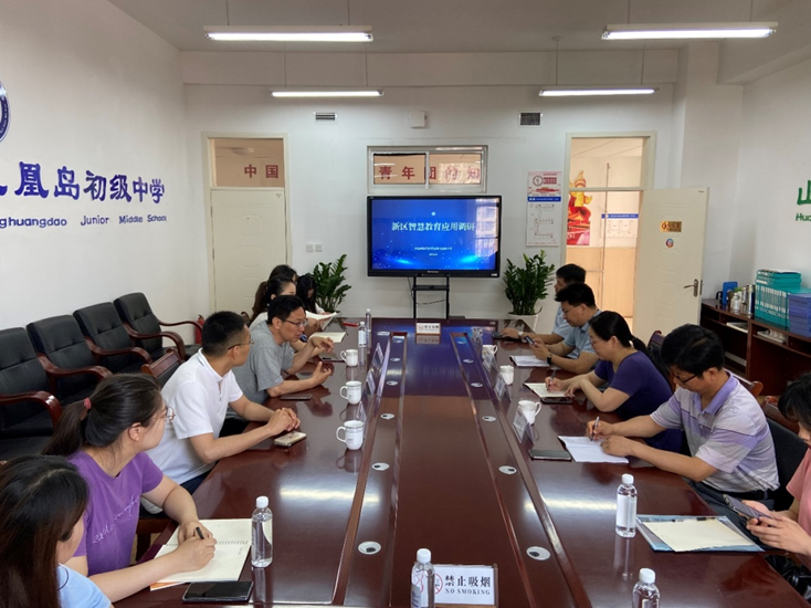 6月23日,师范学院教育技术系师生赴西海岸新区凤凰岛初级中学进行智慧课堂教学应用调研,教育技术系主任杨进中、王兴华教授、田雪葳博士,西海岸新区智慧教育指导中心主任任萌、副主任逄坤勇、刘振海,凤凰岛初级中学校长邢云飞、凤凰岛初级中学教师代表以及师范学院教育技术系部分研究生参加了此次调研活动。