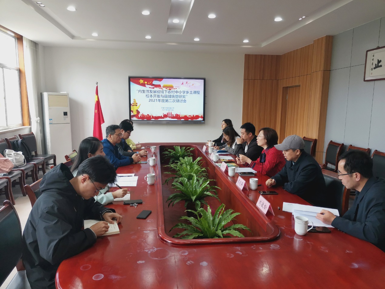与会各小学分别就本校已有乡土教材的开发与实施情况做了详细的介绍,对“内生性发展视域下农村中小学乡土课程校开发与县域统整研究”团队目前编写的三、四年级教材给予了充分肯定,并对教材下一步的编写提出了中肯建议。研究生周婧等将该项目现阶段取得的成果进行了展示,介绍了教材编写思路、内容安排等情况,就教材编制中遇到的问题与参会代表进行了沟通。刘敏松副馆长就教材中语言、符号等细节性问题给予了指导。与会代表们还就教材呈现方式与教学实践等问题进行了深入探讨。