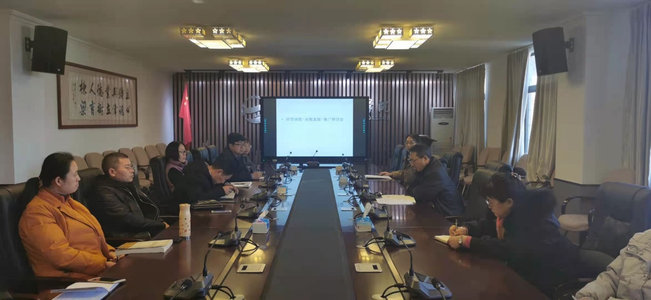 1月20日,师范学院在行政楼301召开“全程实践”成果推广研讨会。会议由副院长马勇军教授主持,学前教育系、小学教育系、心理系、教育技术系和教育系的系主任、相关教师和教科办负责同志参加了研讨会,就师范生全程实践培养进行了热烈的讨论。