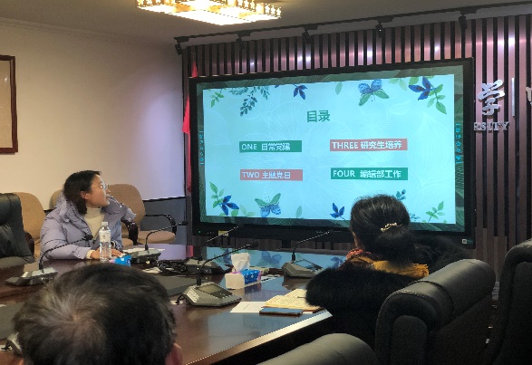 机关党支部书记田新权对支部理论学习和“不忘初心、牢记使命”主题党建活动进行了汇报,强调今后要进一步强化机关党员思想理论的学习,提升服务意识。学生党支部书记赵炜从学生党员培养与发展、落实“三会一课”制度、理论学习与主题教育活动等方面进行了汇报,重点对存在问题进行了分析与反思。
