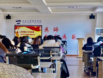 12月3日中午,师范学院学生党支部在德润楼201会议室开展入党积极分子培训课。本次培训课由学院党委副书记王成海主讲,师范学院今年5月、9月确定的两批入党积极分子全员参加培训。