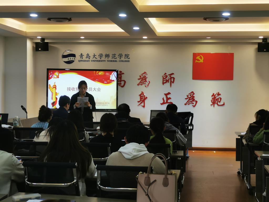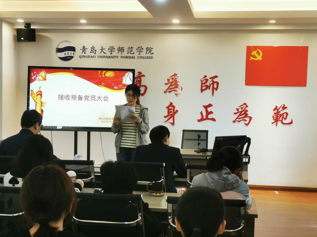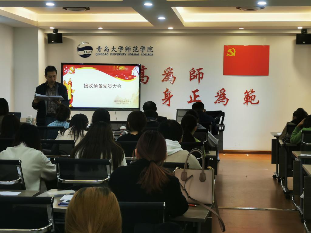 10月30日中午,师范学院学生党支部在德润楼201会议室召开师范学院发展新党员大会。学院党委副书记王成海、校党委组织员徐炜光、全体党员和党员发展对象参加本次活动。会议由学生党支部书记赵炜主持。