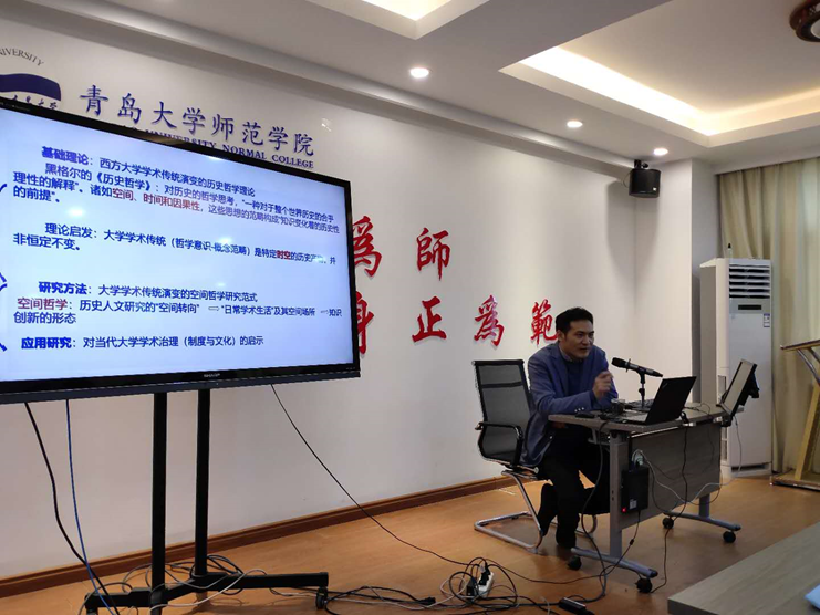 尹建锋以“西方大学学术传统的空间形态演变及其启示”为主题,从古希腊哲学传统的沿袭、人文与宽容意识的萌发、科学与理性意识的兴起以及国家意识的自我克制等方面对学术传统研究的“空间转向”进行了详细讲解。