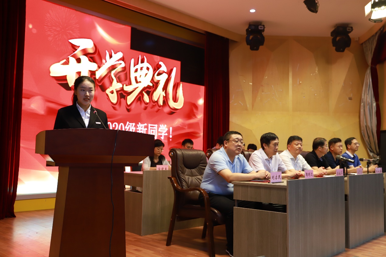 新生代表张洺菲代表2020级新生发言,表达对老师们辛勤育人、关怀同学的真挚敬意,并立志与同学们携手共进,做自己人生的掌舵者,承担起家国责任。