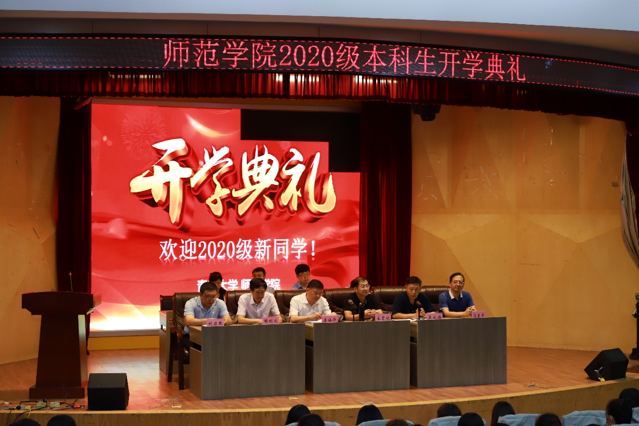 9月25日下午两点,师范学院在德润楼学术报告厅召开2020级本科新生开学典礼。学院党委书记宋贵欣、院长李福华、副院长陶明达、马勇军、刘启民出席典礼,学院各系主任、教师代表、在校生代表以及2020级全体学生参加了本次会议。会议由党委副书记王成海主持
