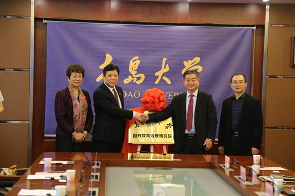吃瓜 合作发展处处长张燕、国开教育集团副总裁兼国际教育事业部总监肖锡铭代表双方签约。夏东伟校长、王鲁刚董事长为研究院揭牌。