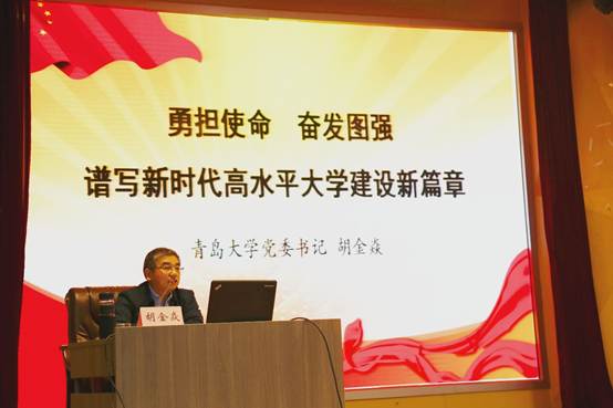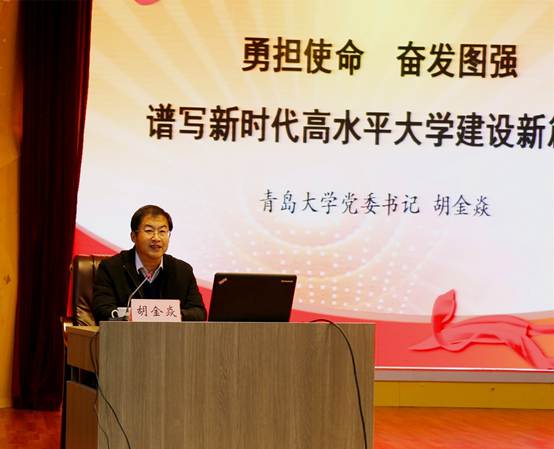 宣讲会上,胡金焱对党代会确定的“进入国家‘双一流’建设行列,建成国内外有较大影响的一流大学”的总体目标、三步走发展战略、“五大发展理念”、“五个战略重点”和实现发展的“十大建设工程”做了详细解读。对学院建设提出了七点要求:一是要切实加强党的基层建设,为学院的发展定向护航。二是要深刻理解内涵发展、特色发展和创新发展理念,牢固树立师生为本、育人为本的教育价值导向,尊重和发挥师生办学主体作用。三是要转变人才培养理念、提高教师教书育人能力,大力开展创新创业教育,提升人才培养质量。四是要提升承担重大科研任务的能力,激发学术平台的创新活力,全面提升科学研究和学术创新的整体水平。五是要加强高层次人才引进和培养工作,提高管理水平,建立人才队伍支撑、激发干事创业活力。六是要立足青岛、融入青岛、服务青岛,服务山东新旧动能转换。七是要在人才队伍、人才培养、学术研究上实施国际化开放办学工程。