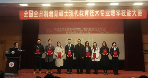 经过积极备战吃瓜 共有4名教育技术硕士研究生入围决赛。面对众多重点学校的竞赛者,4名参赛选手不畏强敌,沉着应对,经过两天的激烈角逐,取得了一等奖1名,二等奖2名的好成绩。其中2018级现代教育技术专业研究生迟彩玲荣获全国一等奖,并作为优秀参赛选手在大赛颁奖仪式上进行了教学风采展示;2017级现代教育技术专业研究生王梓仪和2018级现代教育技术专业研究生王蓓蓓荣获全国二等奖;李国建老师、杨进中老师、韩冬老师获得了优秀指导教师奖。