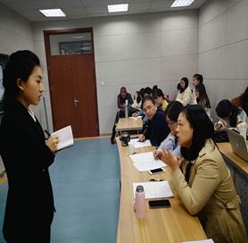 最后,马勇军院长从精选讲课内容、设计总体教学活动、答辩简洁自信等方面对两位同学的试讲进行指导,为两位同学设计教学指明方向、同时提供提高教学技能的有效策略、为她们增加信心。同学们以热烈的掌声对各位老师的指导表示感谢。这次活动不仅为两位比赛同学提供了研磨提升的机会,也为在座的研究生们打开了教学设计新大门。