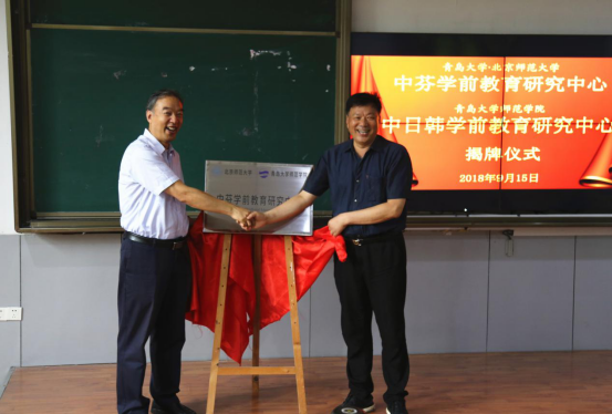 9月15日上午,学前教育系在德音楼116教室举行“中芬学前教育研究中心”揭牌仪式,标志着师范学院“中芬学前教育研究中心”正式成立。北京师范大学国际与比较教育研究院院长刘宝存教授、副院长滕珺博士、师范学院院长李福华教授、副院长马勇军教授、学前教育系主任王芳博士及全体师生百余人参加了揭牌仪式。同时,山东省商务厅幼儿园、青岛市崂山区实验幼儿园、青岛市市北区实验幼儿园、青岛市实验幼儿园园长和相关代表也出席了会议,共同见证了这个历史时刻。