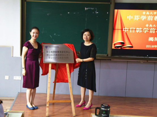 师范学院学前教育系主任王芳博士共同为中日韩学前教育研究中心揭牌