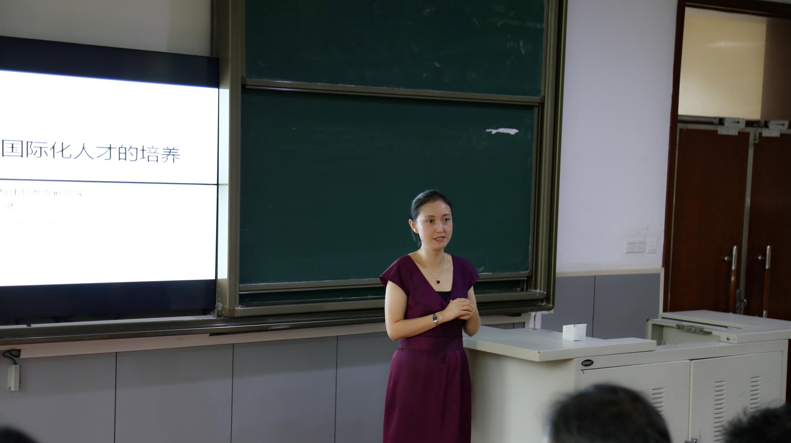 报告期间,滕珺教授通过最新的研究数据,向同学们介绍了21世纪社会发展的基本趋势是全球化。同时,利用数据分析从工业时代到大数据时代的进程中人类技能需要的转变,着重强调了核心素养与培养国际化人才的重要性,提出“国际化与每个人的发展与生存息息相关”的观点。