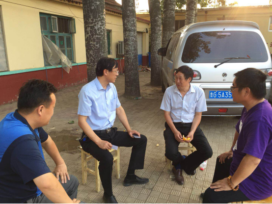 离开学校后,心理援助服务队来到口子村村委会,陶教授与寿光市总工会党组书记、常务副主席孙荣新、寿光市宣传部部长刘培杰部长、寿光心理协会会长孟祥军在工作之余坐在村委大院中畅谈。孙书记和刘部长向陶院长介绍了寿光市的发展历史、经济发展和灾后重建现状。关于做好寿光市人民、单位、特别是企业的心理健康建设向陶教授进行了咨询和论证。而后,陶教授将心理援助队近几天的工作内容和进展向孙书记进行了介绍,重点说明了对村内抗洪英雄李新江和受财产损失极为严重的李敬宗进行心理疏导的成效。孙书记高度赞扬了陶教授及率领团队的工作成效。并说道:做好这些人员的心理疏导工作,比赔偿他们一百万、两百万更有成效。他们本身就是抗洪救灾的榜样人物,也在洪灾中受到了经济损失,如果他们的心理问题无法排解,散发的负能量和负面效应将远超于常人,做好他们的心理健康工作,让他们发扬更多的正能量,极大的帮助了抗洪救灾的群众工作开展。而后,陶教授又从专业的角度,对寿光市社会心理健康服务体系的建立提出了建议。从服务人员的广度、服务内容的深度、服务过程的完整度三个角度出发,与孙书记进行了讨论。孙书记连声赞扬陶教授的经验丰富和专业敏锐。并盛情邀请陶教授对寿光市社会心理健康服务体系的建立进行督导和帮助。