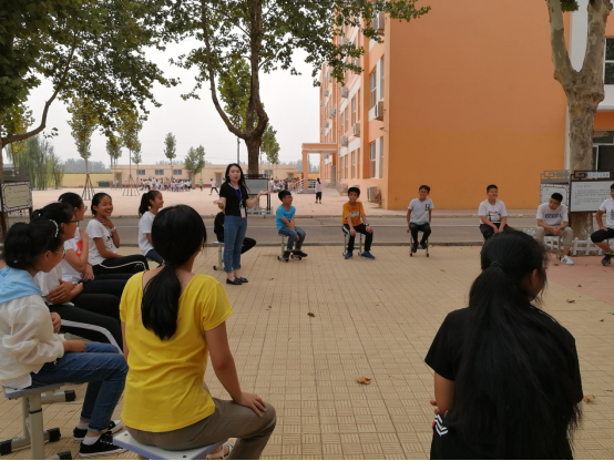 图12:刘雅茜为学生讲解“大风吹”游戏规则