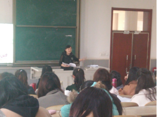 随后,学前教育系开展了为期两天,涉及四大领域的教师说课考录培训大会。2018年3月24日上午,市北区教研员朱平老师从总体上为大家详细介绍了说课的概念、基本流程,明确了纲要和指南的具体应用方法,强调了说课的“准、明、清、精”,并以大班语言《逃家小兔》为例为大家进行举例示范,深入浅出,明确落实,指出学生问题的关键点。