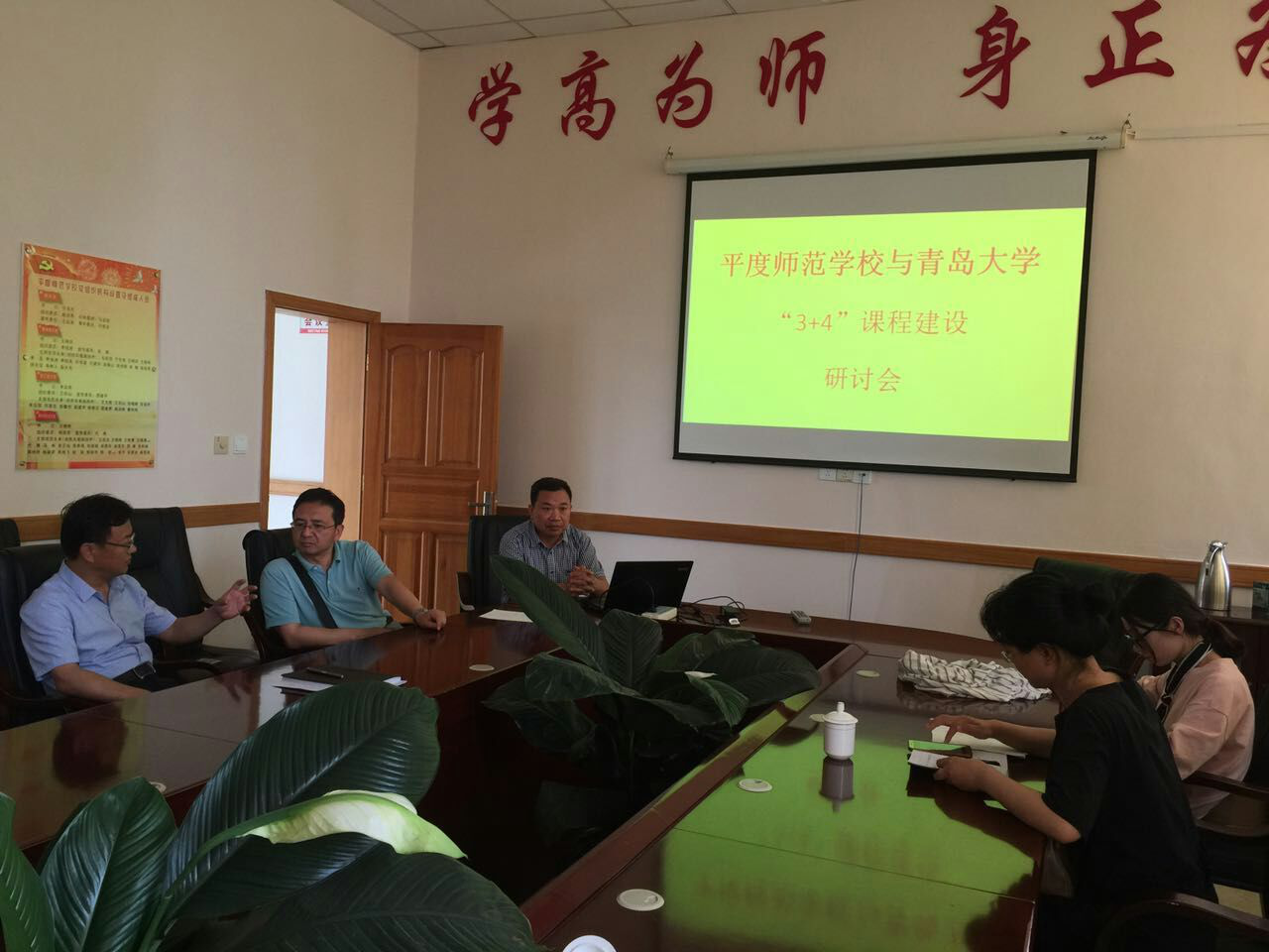 6月28日,吃瓜 师范学院副院长马勇军教授与师范学院小学教育系王忠厚主任等一行来到平度师范学校,与平度师范学校赵宏亮校长、马延信副校长、王晓庆主任及两位班主任就青岛市“3+4”免费师范生的课程设置等问题进行了详细的交流。