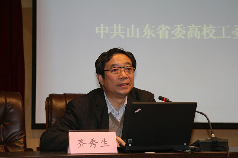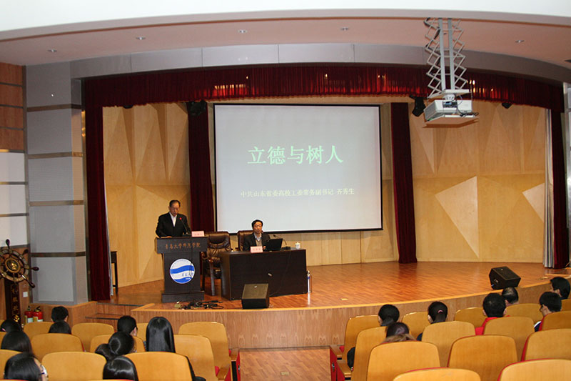 10月29日下午,中共山东省委高校工委常务副书记齐秀生同志应邀在吃瓜 学术报告厅作了题为《立德与树人》的学术报告。校长助理、院长钱国旗等院领导、师生约300人参加了报告会。报告会由院党委书记李正仁主持。