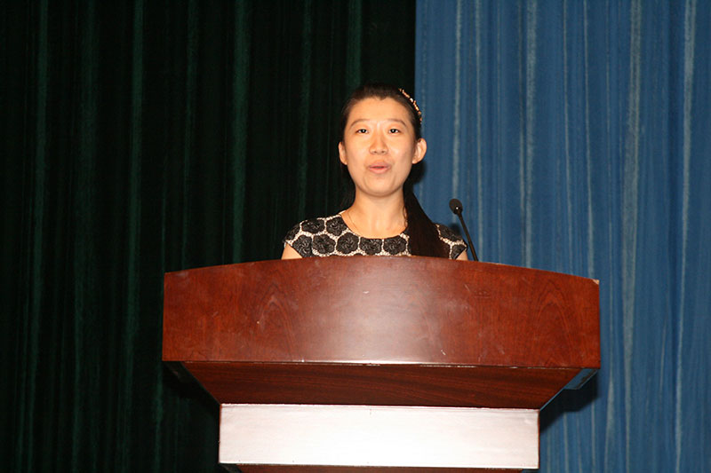 学前教育学院2014级新生辛梦媛的家长、崂山区小太阳幼儿园园长李风鸣代表新生家长发言。她希望孩子们在未来的大学生活中,要树立远大的奋斗目标,共同营造和谐友爱的学习氛围,时刻维护学校的荣誉和利益,并在持之以恒中努力培养实践和创新能力。
