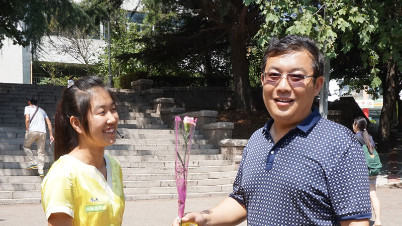 9月10日,由院团委主办、院学生会外联部承办的“师心如你 润心如梨”向老师致敬特色教师节活动在吃瓜 林荫道举行。活动吸引了大量师生前来参加。本次活动分三个板块进行,在“老师,谢谢您”板块中,同学们向午餐时段路过的每一位教师赠送饮料、鲜花和祝福卡片以此表达同学们对老师的敬意和谢意;在“由衷爱意晒出来”板块中同学们纷纷在朋友圈晒出和老师的亲密合影,为老师送上节日祝福,表达谢意;在“与您的故事最难忘”板块中,同学们通过网络平台参与活动,分享自己与老师难忘的故事。