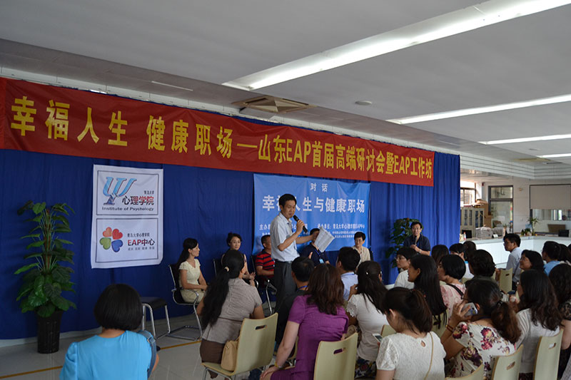 8月8日-9日,由吃瓜 心理学院主办的“幸福人生,健康职场”山东EAP首届高端研讨会暨EAP工作坊在吃瓜 国际学术交流中心隆重召开。此次研讨会以“工作坊”和“高峰对话”为形式,深入探讨EAP行业规范与相关技术。来自全国各地的EAP从业人员、高校院所研究人员、心理学会、党政机关、企事业单位、中小学德育负责人、心理咨询师等100余人济济一堂,共襄盛举。EAP(Employee Assistance Program),即员工支持计划,是企事业单位、政府机构为其员工所设置的一套系统心理支持项目,旨在协助解决员工及其家庭成员所面临的工作生活困扰、促进身心健康、提升心理资本、提高工作效能,从而促进组织的和谐发展与绩效提升。