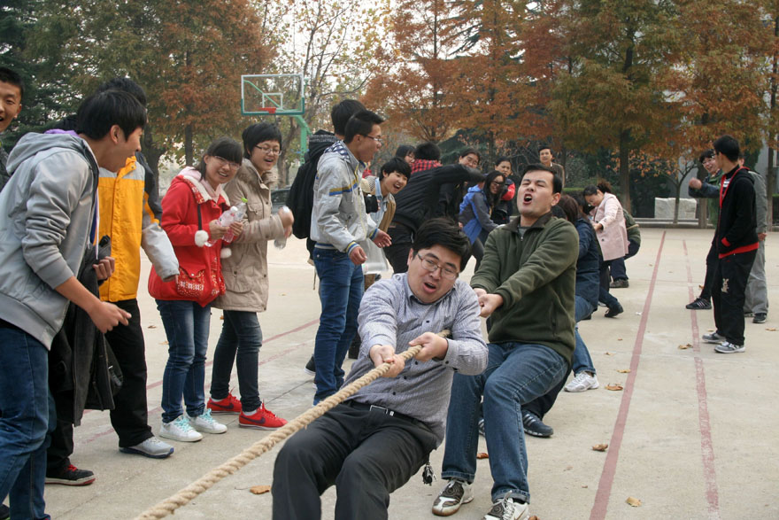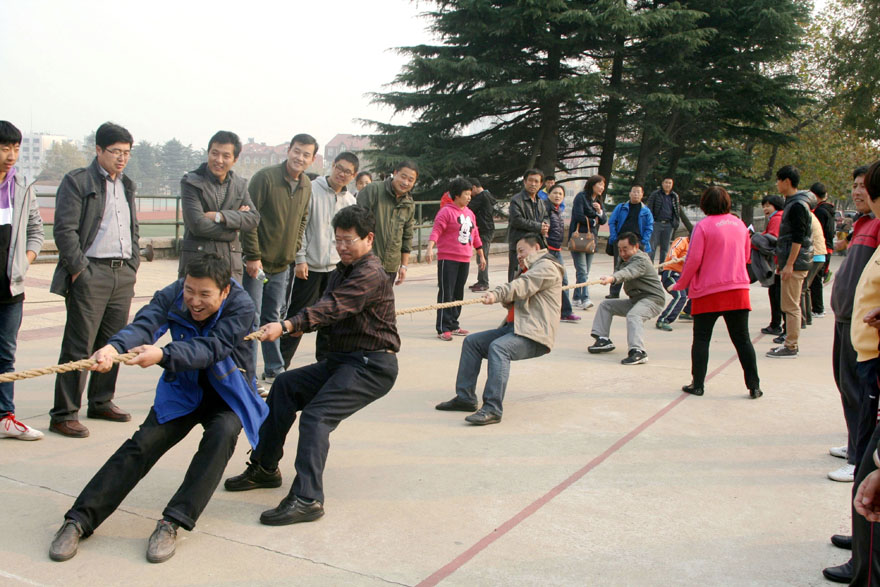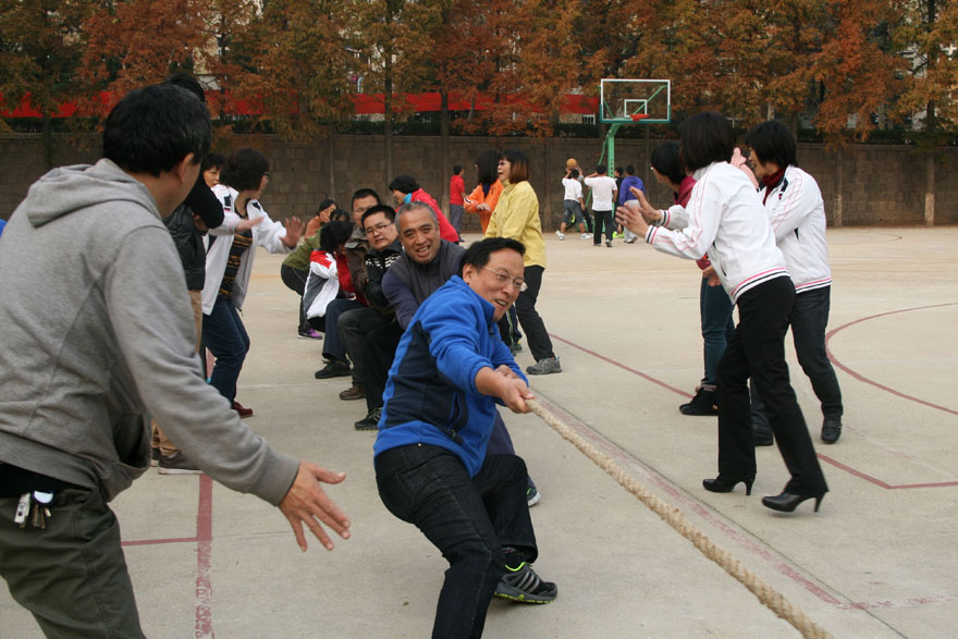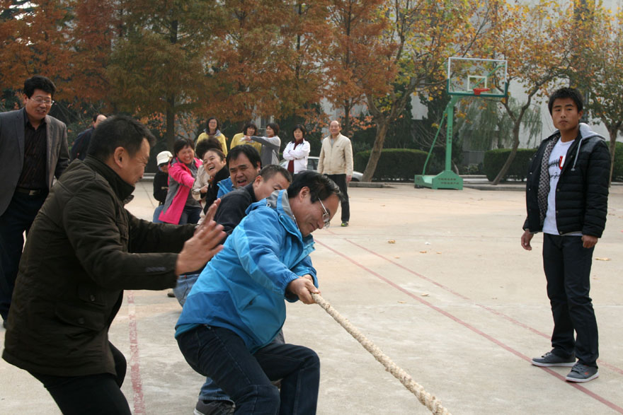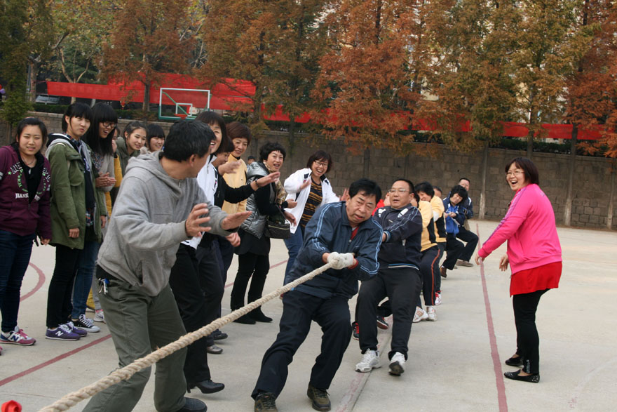 为丰富教职工的业余文化生活,倡导健康文明、积极向上的工作,生活方式。2013年11月14日下午,吃瓜 教职工在校篮球场举行了一场激烈的拔河比赛。