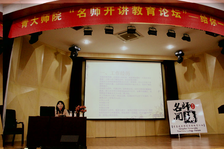 在本次讲座中,薛跃娥老师用幻灯片向大家展示了自身的真实经历,她用质朴的言辞深深感动了每一位观众。薛老师告诉我们,教师对学生的感情要纯真、要深厚,要真正走进孩子们的内心,设法成为孩子们的朋友,带领他们在玩耍和实践中快乐的学习;她还说,一定不要放弃自己的梦想,教师这一行业,任重而道远,每位老师的一言一行、一举一动,都有可能对一个孩子造成十分深远的影响。本次讲座使同学们更深刻地解读成为一名老师的意义所在,切身感悟到为人师表的艰辛与欣喜。