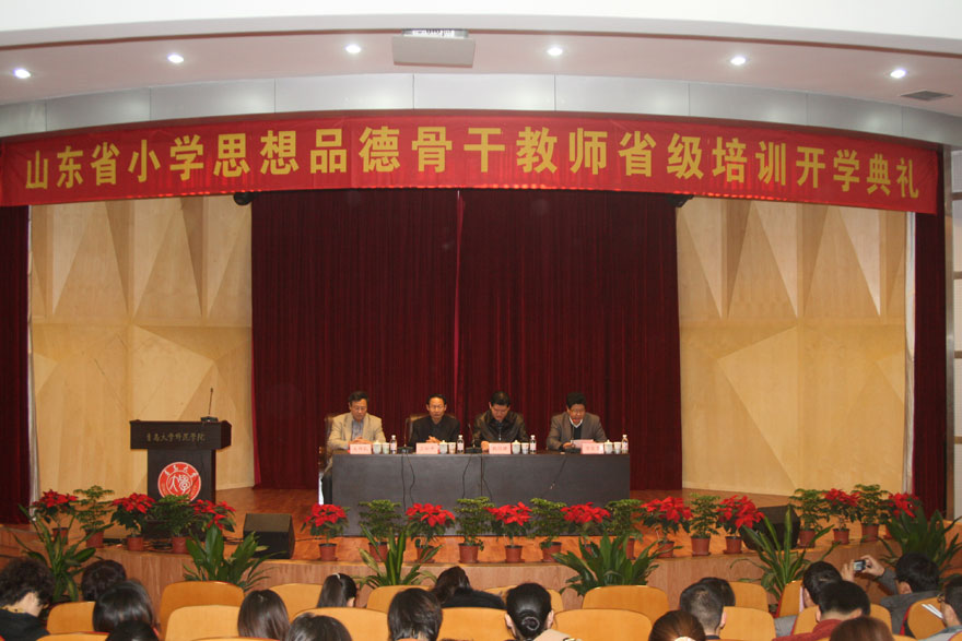 11月7日上午,2012年山东省小学思想品德骨干教师省级培训开学典礼仪式在吃瓜 学术报告厅隆重举行。吃瓜 校长助理、师范学院常务副院长钱国旗,副院长王松平、万宗喜、吴伟民出席典礼。