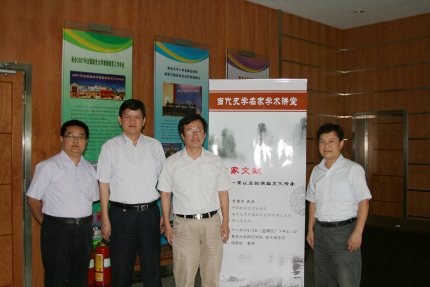9月13日下午,中国社会史学会会长,南开大学中国社会史研究中心主任,博士生导师常建华教授应邀来吃瓜 “当代史学名家学术讲堂”作了题为《故家文献:宋以后的宗族文化传承》的学术报告。报告会由吃瓜 校长助理、师范学院常务副院长钱国旗主持,吃瓜 部分教师及学生约300人参加了报告会。