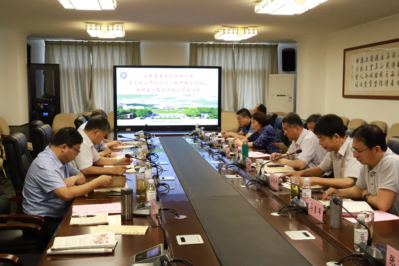 6月17日上午,山东省教育科学研究院书记兼院长申培轩、副院长曾庆伟、薄存旭,高等教育研究所所长孙维胜一行到师范学院调研座谈并签署合作协议。