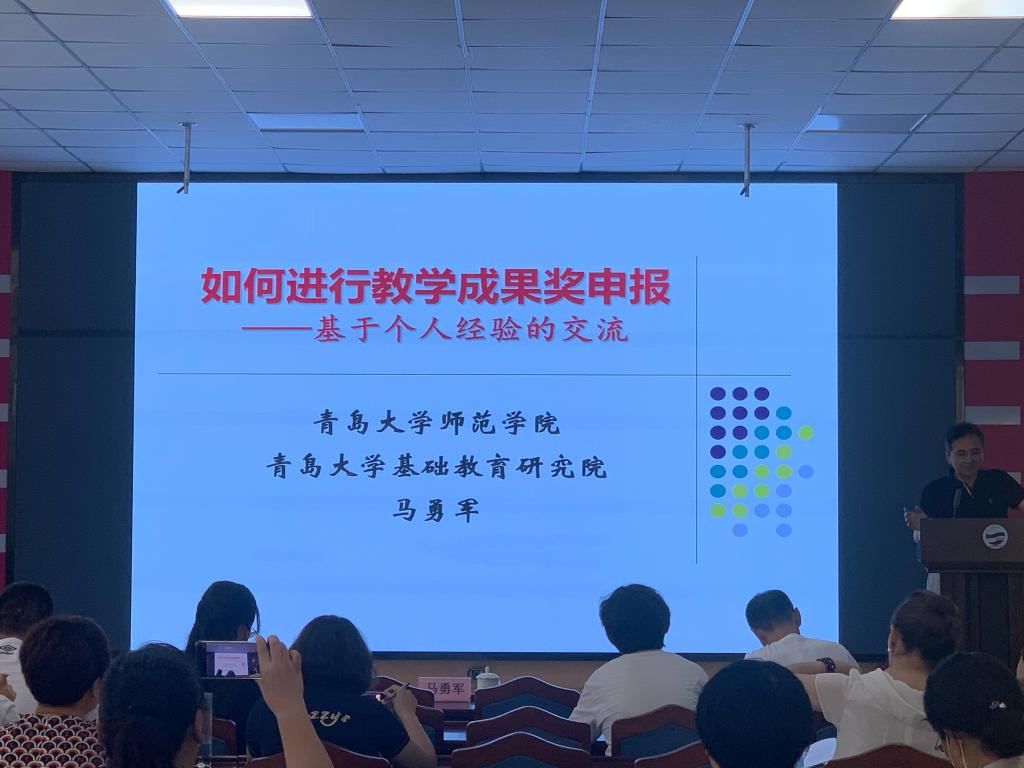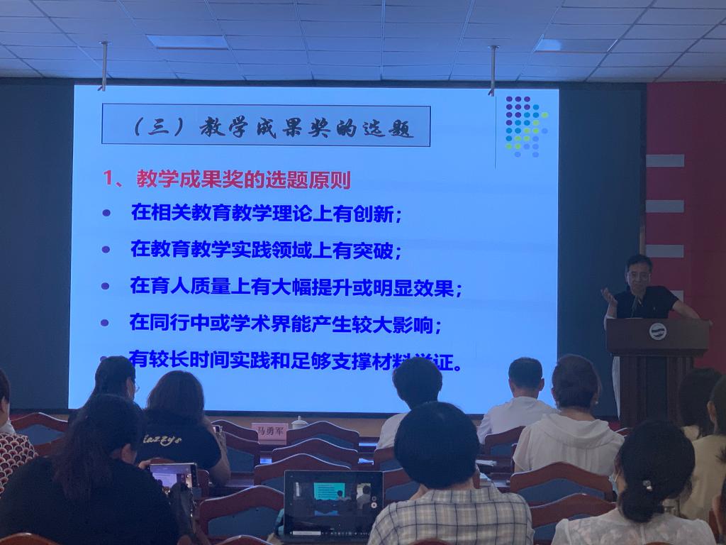 7月8日,学院副院长马勇军教授应邀到吃瓜 市北区附属中学举办教学成果奖申报专题培训会。市北区初选教学成果奖团队成员参加了本次培训会。