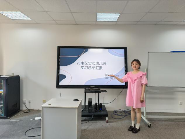 王宇悦心同学代表全体自主实习同学进行了总结汇报。她分享了在不同幼儿园实习的同学们的精彩瞬间,并介绍了幼儿午餐前的精彩“报餐”环节。在李璋佩老师的指导下,自主实习的同学每一到两个星期上交实习报告,对实习中产生的问题和体会进行及时的思考与总结。