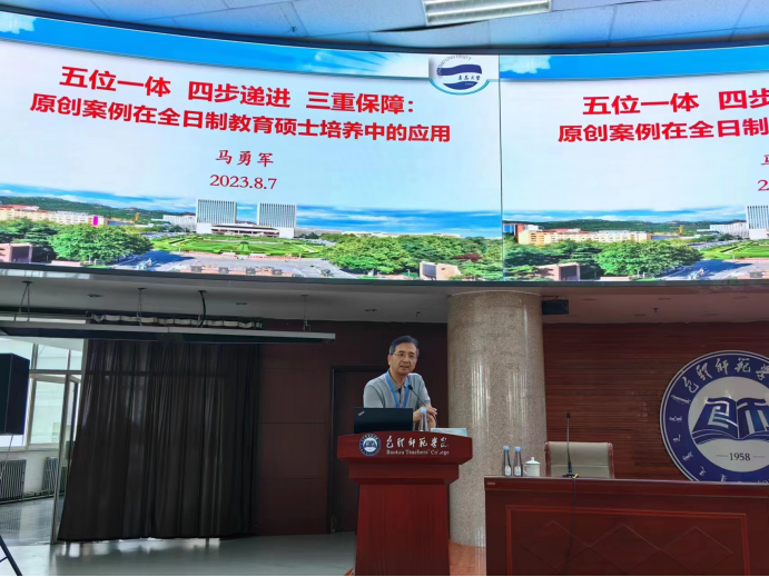 副院长马勇军教授应邀在会议上作专题报告:“五位一体、四步递进、三重保障——原创案例在全日制教育硕士培养中的应用”,分享其团队在案例开发与应用方面取得的经验与成果,得到了与会专家高度评价。