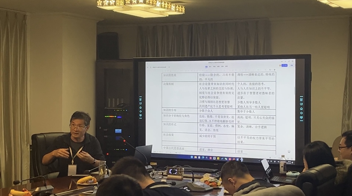 周一骑教授以《思想史与心理学中的两种视野》为题,介绍了受限视野和不受限视野下的人性、人生态度、克服局限方式、知识观、决策机制、社会政策等,并结合中国古代不同的思想流派对两种视野进行了深入的阐释。