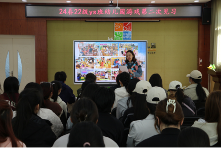 4月24日,学前教育系2022级幼师班的同学们在王芳教授的带领下进行本学期幼儿园游戏课程的第二次见习。