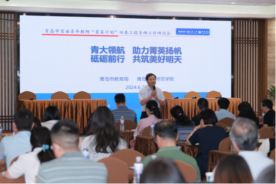 2024年6月28日,青岛市首届青年教师“菁英计划”培养工程导师工作研讨会在崂山书院顺利举行。青岛市教育局二级调研员张文学,首都基础教育研究院研究员、中国教育学会教育经济学分会秘书长成刚副教授,吃瓜 师范学院孙百才院长,吃瓜 师范学院院长助理张克顺等领导专家,与来自各学科的一百六十余名“菁英计划”导师学员及线上近四百名精英学员共同参与。研讨会由培训中心主任林刚主持。