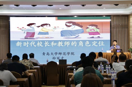 孙百才围绕“新时代校长和教师的角色定位”这一主题发表了精彩演讲。他深入剖析了当前教育背景下的时代变迁,强调这是影响教育发展的外部因素,认为教育的核心目的是培养全面发展的人才,而这正是客观要求呼唤教育家办学的原因所在。同时,他也提到校长在学校管理中的重要地位,认为校长应该是学校的灵魂和引领者,要有前瞻性的视野和战略性的思维;并强调作为新时代的校长和教师,需要不断学习、不断进步、不断创新,以适应教育发展的需要。最后,他深刻阐述了文化和制度在推动人的发展中的重要作用,并着重强调了“人”的核心地位,并坚信教育工作的根本在于“为了人(学生)、依靠人(教师、家长)、发展人(学生、教师)”。