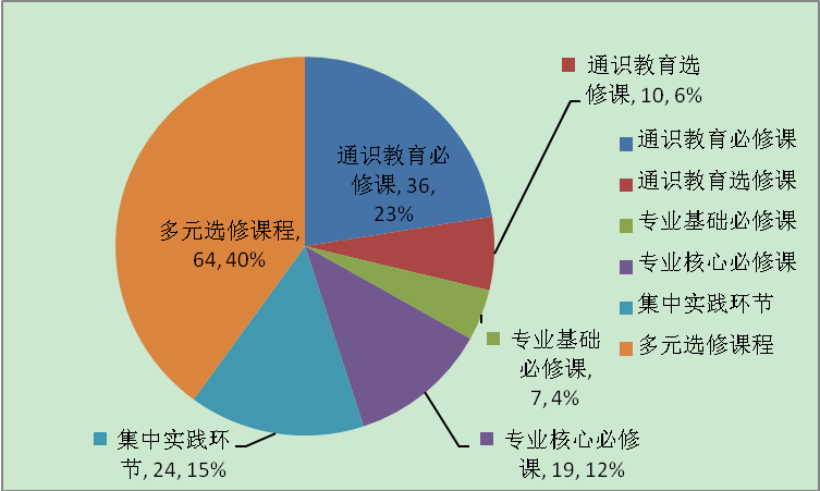 其中通识教育,包括必修36学分、选修10学分;专业教育基础必修7学分,专业教育核心必修课程19学分,专业教育选修至少6学分;学科专业课程共要修读64个学分,占比40%,达到学科专业课程学分不低于总学分的35%的要求。